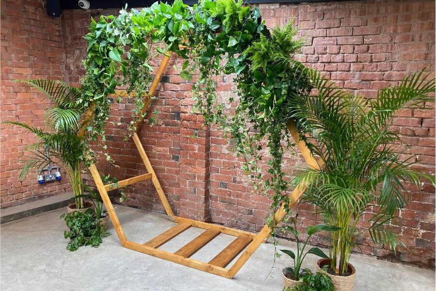 “We chose plants because they’re beautiful but also a sustainable option as they are reused rather than being used once and disposed of. People are still telling us how amazing our plant arch was , 10/10 service from booking, set up and collection after wedding.” – Claire & Rory – 11.02.2024 – The Shack Revolution, Hereford