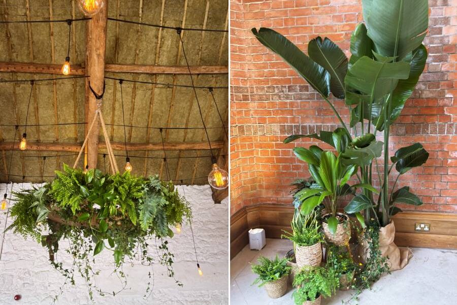 Eco wedding day styling with lush, living plants