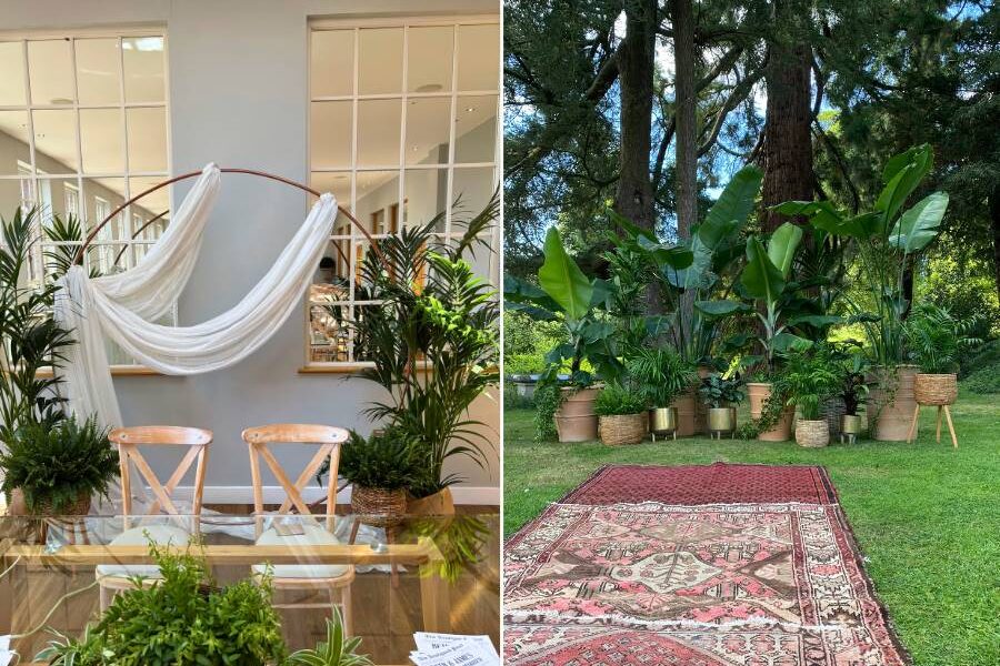 - Plant Rentals – from tall palms to delicate succulents, we curate a diverse mix of real potted plants that soften, structure, and bring life to your ceremony, reception, and everything in between.