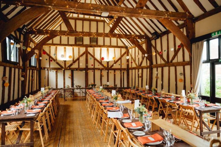 Bore Place lies in the beautiful Kent countryside, just 25 miles from London. A charming, historic Jacobean manor house is the focal point of this rustic country estate. The house is surrounded by pretty gardens alive with flowers in the summer months, as well as 500 acres of rolling green fields and ancient woodlands. A walled garden enclosing a reflecting ornamental pond creates a stunning backdrop for your wedding.